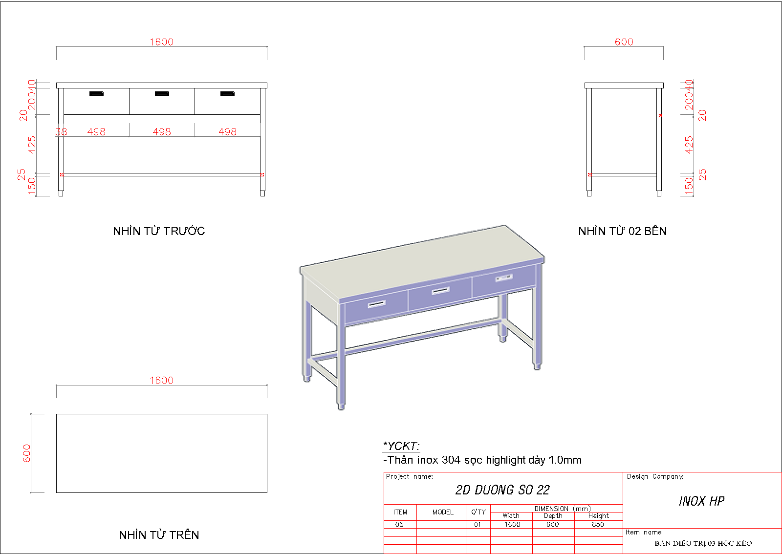 Trang chủ » Cửa hàng » THIẾT BỊ Y TẾ » THIẾT BỊ THÚ Y - PHÒNG KHÁM THÚ Y » Bàn điều trị thú y inox 3 hộc kéo