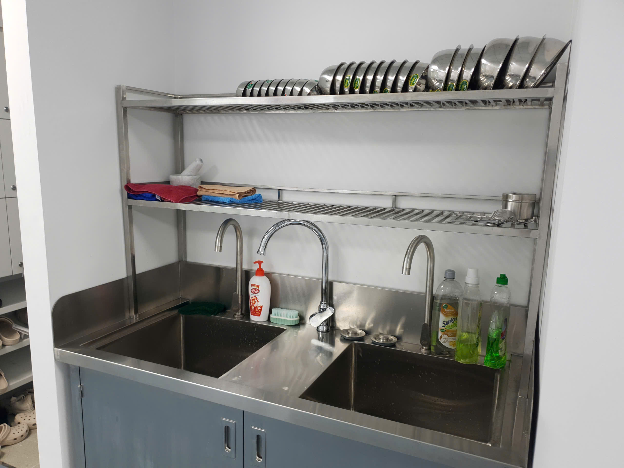 • Bên trên có 02 tầng chứa đồ sau khi rửa