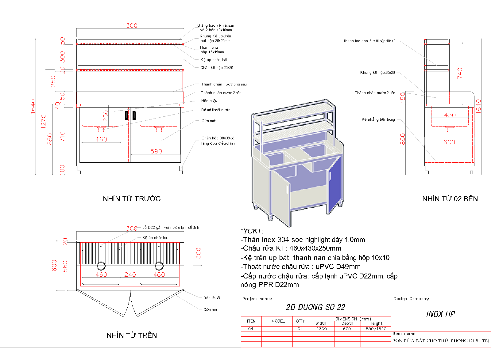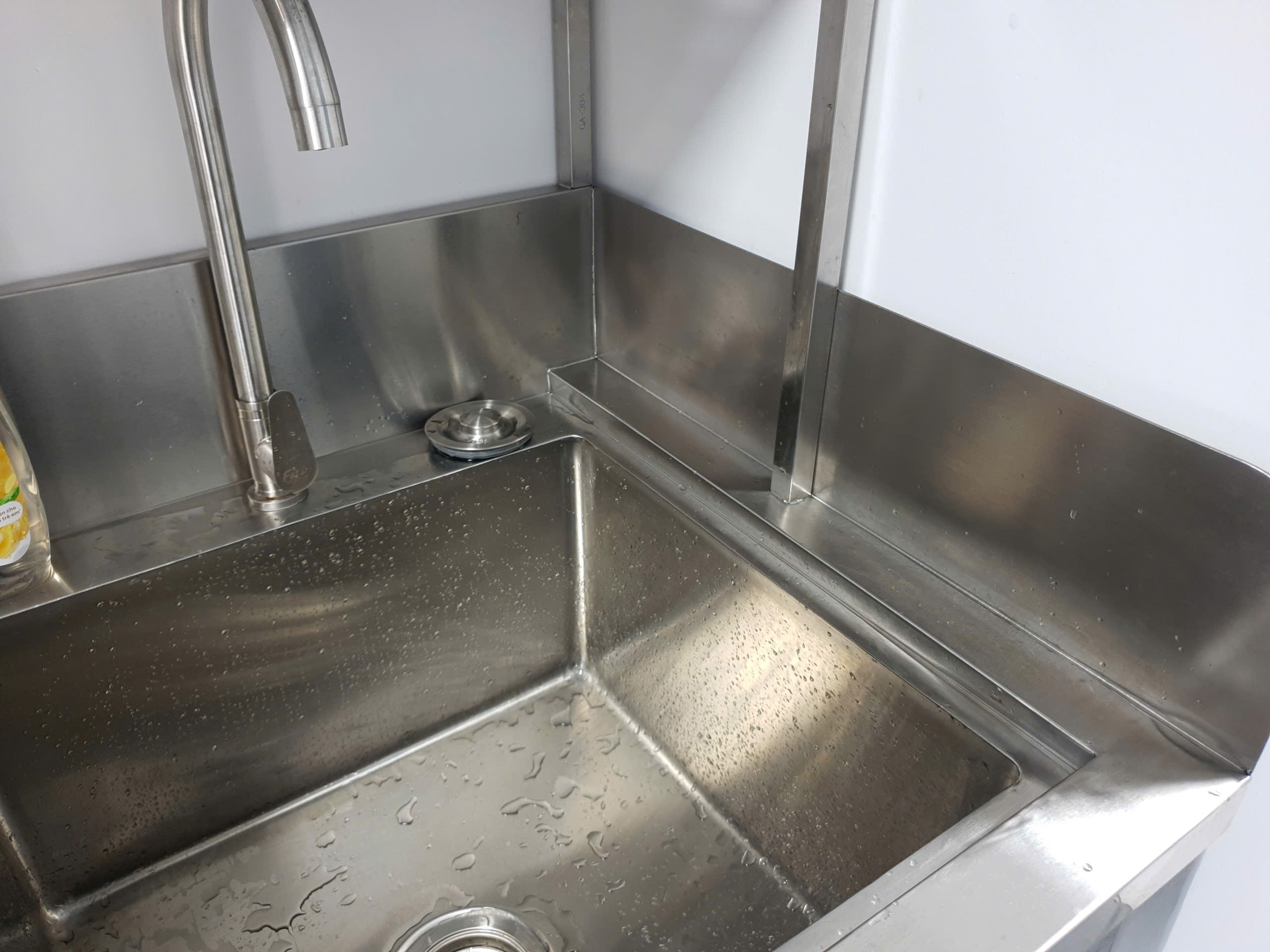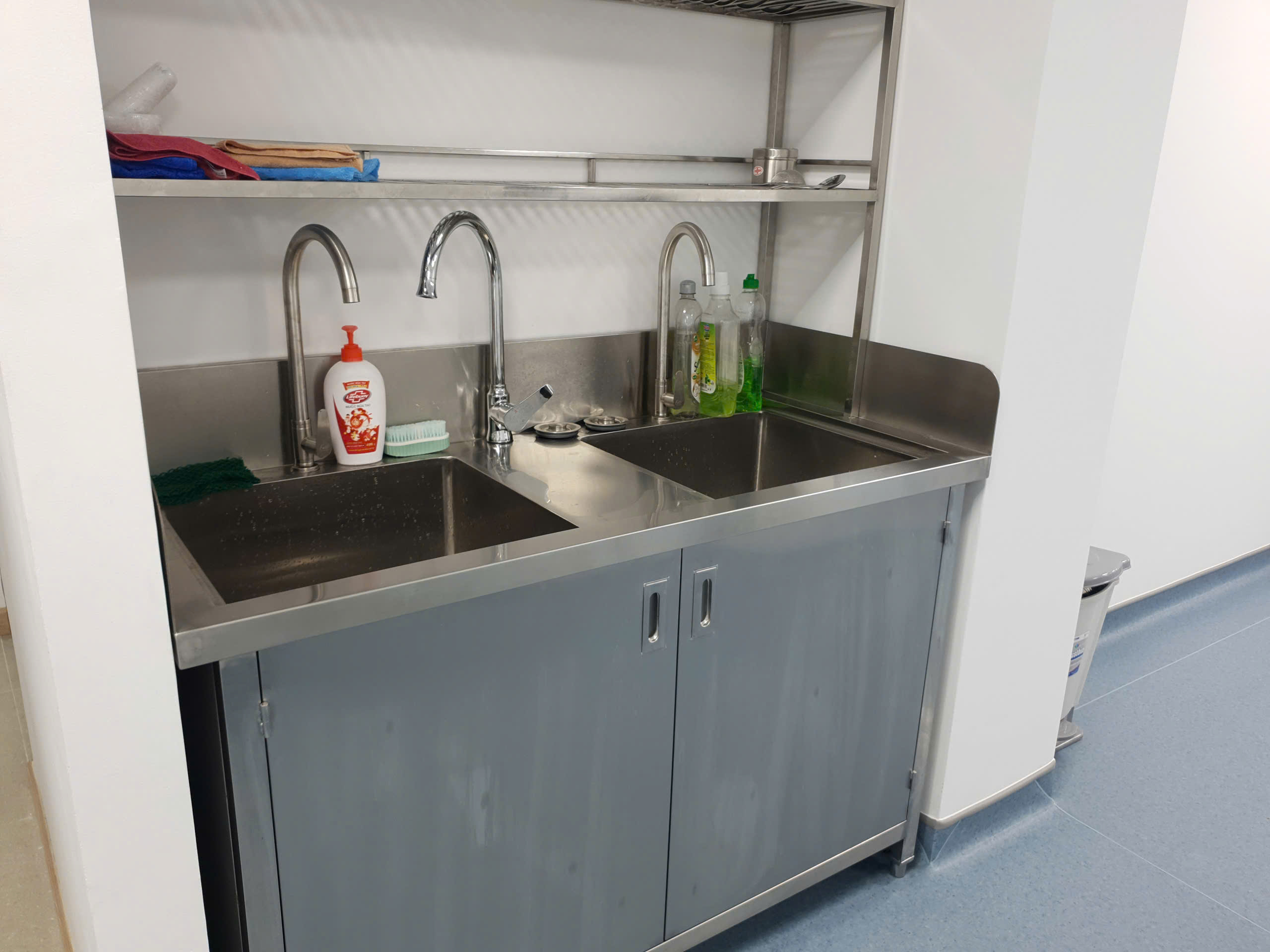 Bồn được sản xuất trong nước theo đơn đặt hàng, cho phép tùy chỉnh kích thước, chiều cao làm việc và vị trí phụ kiện theo thực tế vận hành của từng phòng khám. Toàn bộ kết cấu sử dụng inox dày gia cường chắc chắn, chịu lực tốt và bền hơn nhiều sản phẩm nhập khẩu sản xuất hàng loạt.